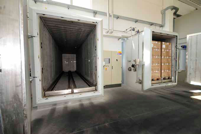 L’impianto è costituito da due autoclavi gemelle da 44 m3 nominali cadauna, che possono accettare fino a 16 europalletts ad autoclave cadauna, con altezza max di 2.300 mm.